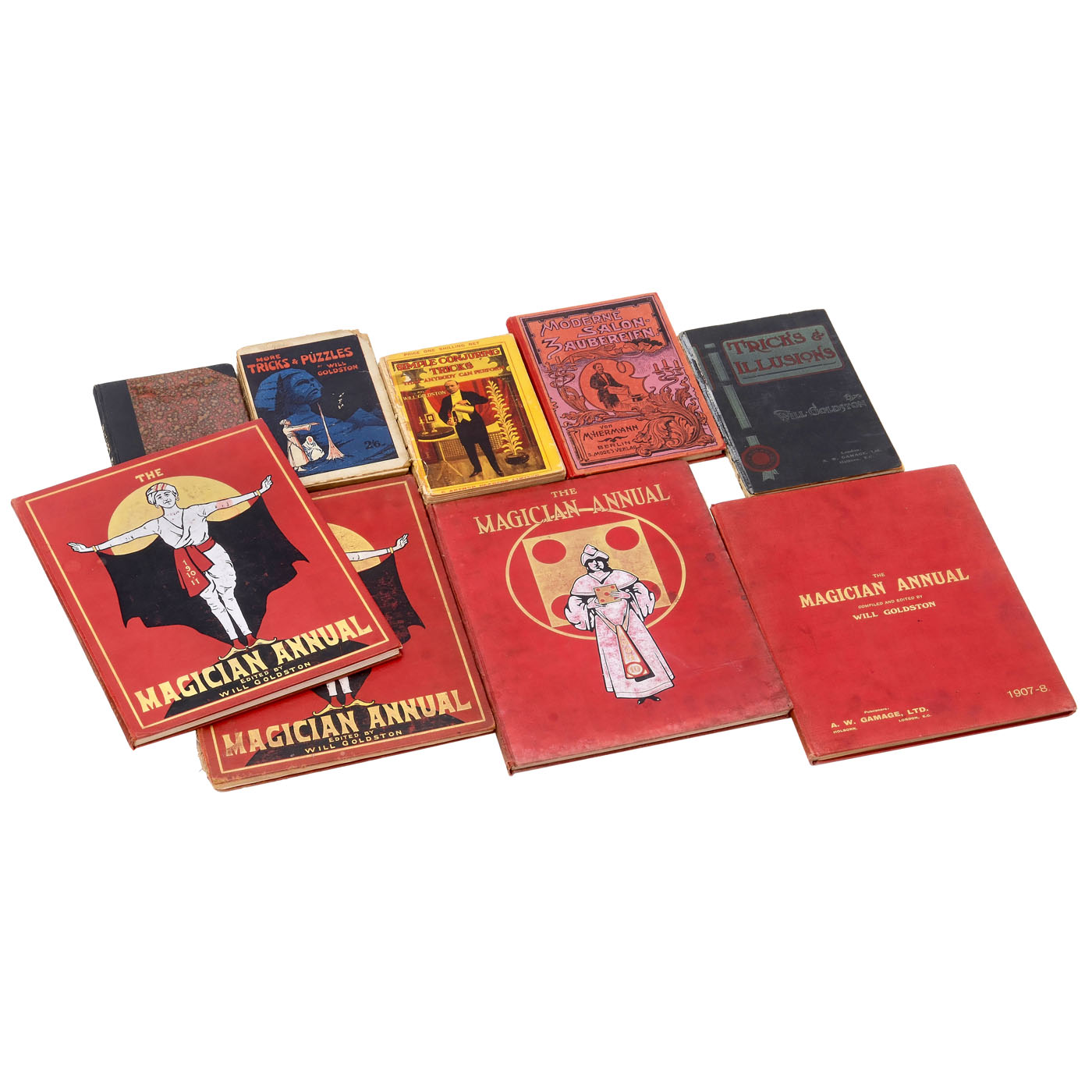 1) 2 magic sets "The Ernest Sewell Cabinet of Conjuring Tricks", England, c. 1935, with metal, wood and paper props. Tricks such as disappearing coins, enchanted ball bag, disappearing candle, linked rings, with small instruction booklet.