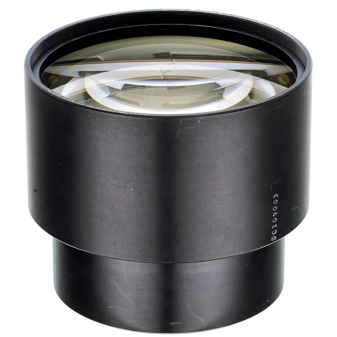 Optical Instruments Corp., Buena Park, CA, USA. Engraved with "U.V. Scan Objective Lens S/N 003", 15 x 13 cm, front lens diameter (glass only) 133 mm, at least 3 elements, rear cylindrical mount diameter 125 mm. At infinity, an image circle of approx. 80 cm (total image circle much larger), which with some chromatic aberration (not an apochromat), produces a consistent image quality similar to a long Trioplan focal length for oversized portrait photography or for camera obscura applications. With a diaphragm from f/44 (not included) onward, there are no directly noticeable chromatic aberrations. The company is known for high-quality military optical systems, weighing only 3.12 kg, showing some signs of age under point light (rather unimportant for the application), presumably a design with the collaboration of Karl Reithmaier. Since, according to the engraving, this lens's achromaticity is designed more towards UV, it should be particularly well-suited for collodion for more precise focusing.