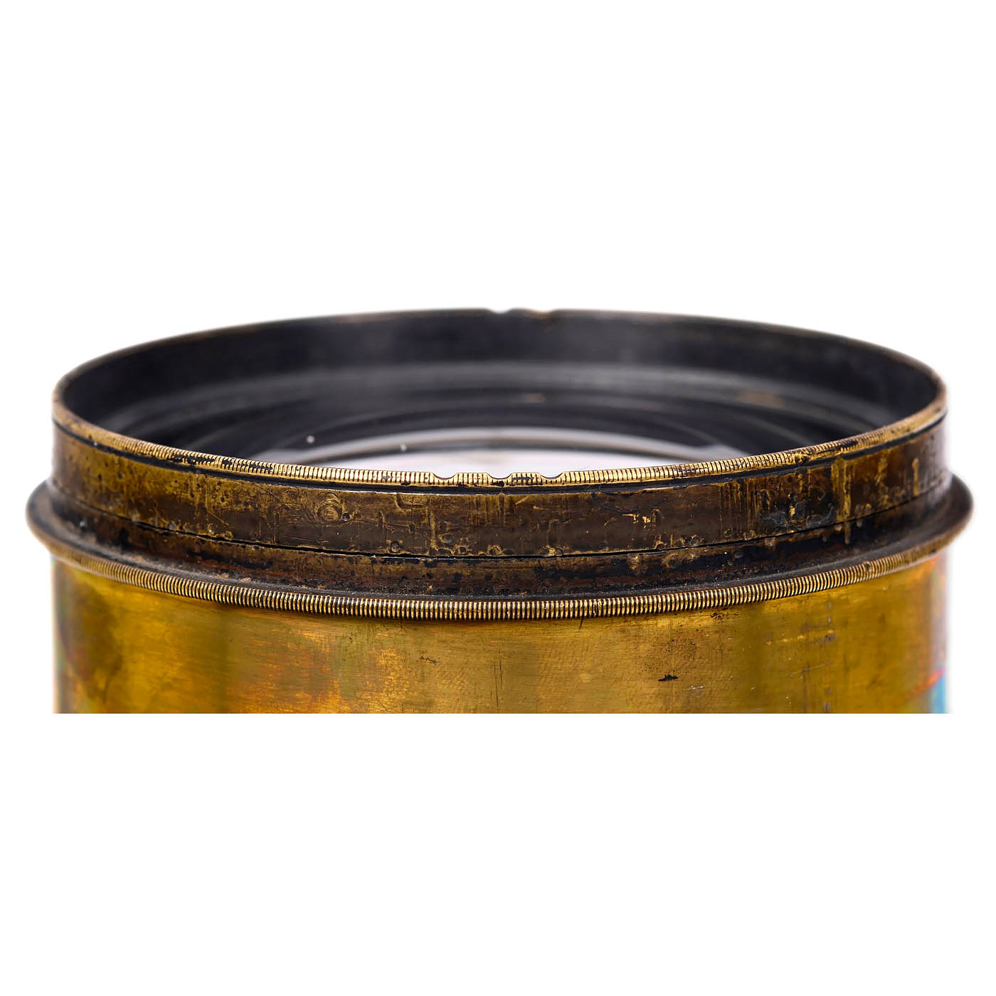 J.H. Dallmeyer, London. No. 30053, focal length approx. 11 in., brass, for Waterhouse stops (with No. 5 for stop 16), height 8 in., front element ? 8.9 cm, rear element with smoothly moving soft-focus adjustment, glass clean under point light, all lens parts movable, lens hood with some very minor dents, with cap and mounting ring. – Note: An interesting feature is the rotating rear-element mount, through which the spherical aberration can be influenced and a "soft-focus" effect achieved. – A sought-after portrait lens.