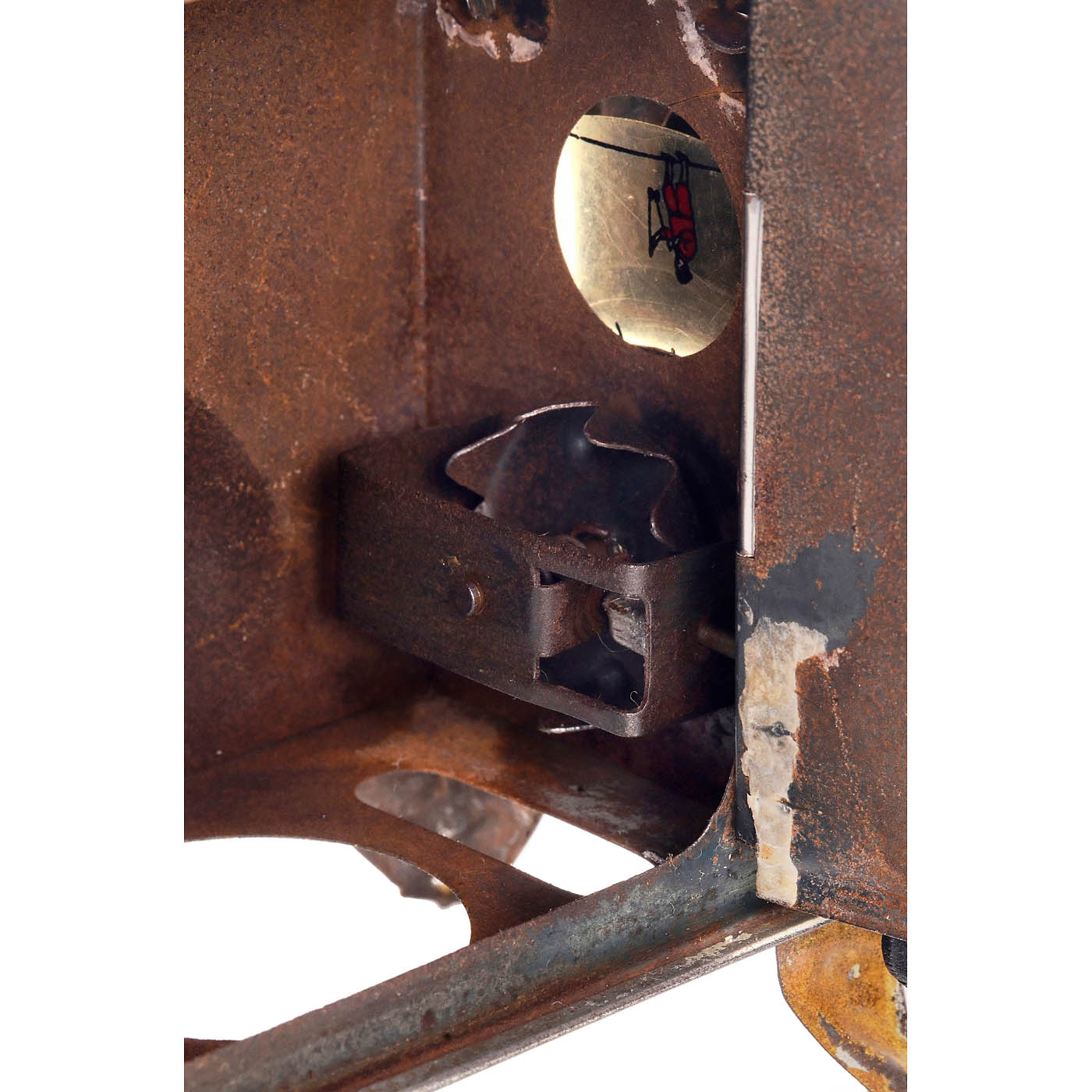 Germany. No manufacturer's mark, blued-tin case with gold-bronzed feet, 7.5 cm celluloid disc that rotates jerkily, depicting the animated movement of an acrobat with a rope. The pressure knob for the disc on the axis of rotation has been replaced by a side clamp. A crank on the case; the jerky movement is achieved only by turning it counterclockwise. Designed for standard 2.4 cm wide magic lantern strips, with a complete set of 12. Height including chimney 20 cm, with internal reflector. – Literature: "The Magic Lantern", Number 11, June 2017, German Toy Lanterns – Projecting Phenakistoscopes.