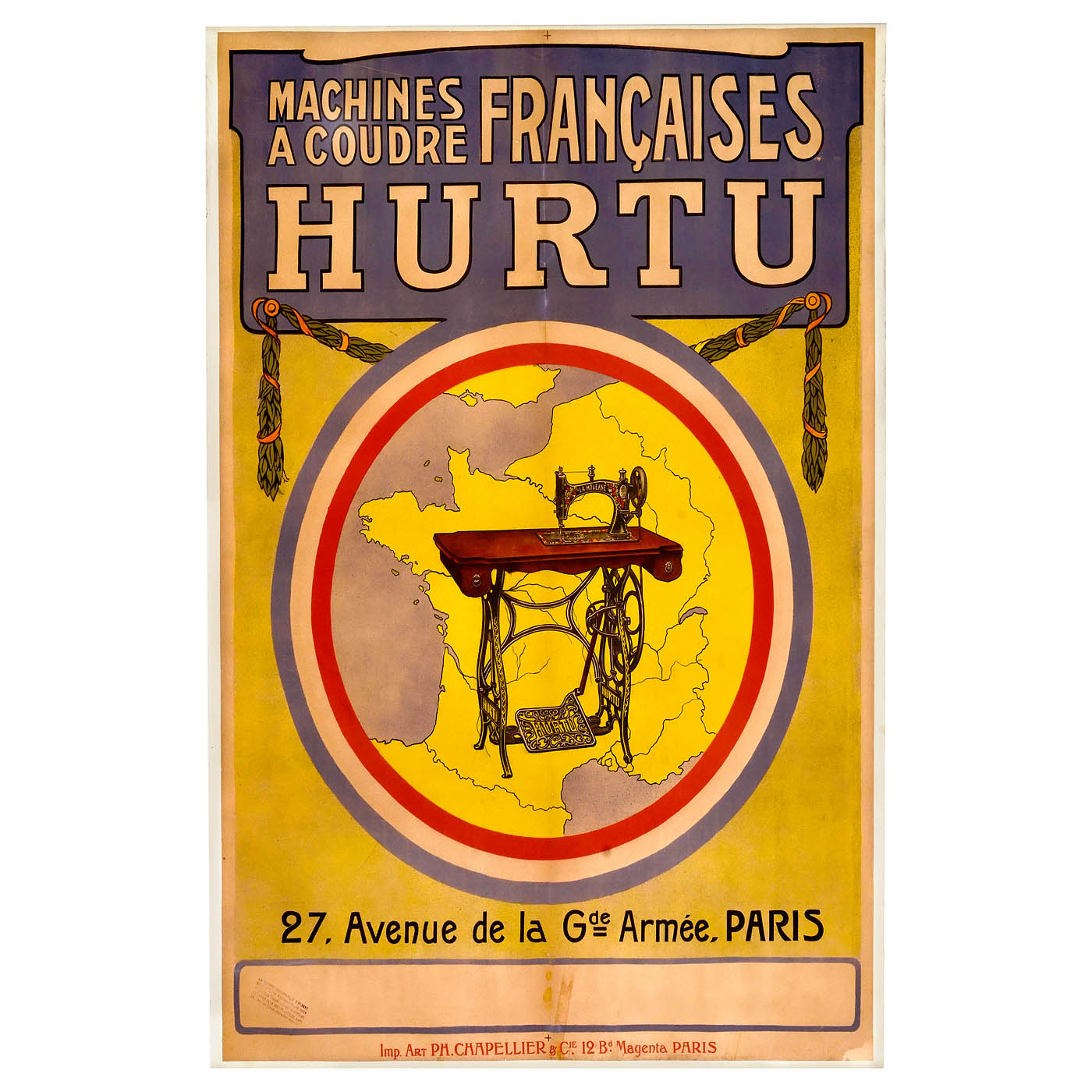 Original poster "La Moderne" by Hurtu, Paris, professionally mounted on canvas, dimensions 41 ? x 59 ? in. – An eye-catcher in any sewing machine collection, rarely ever found in this size and quality.