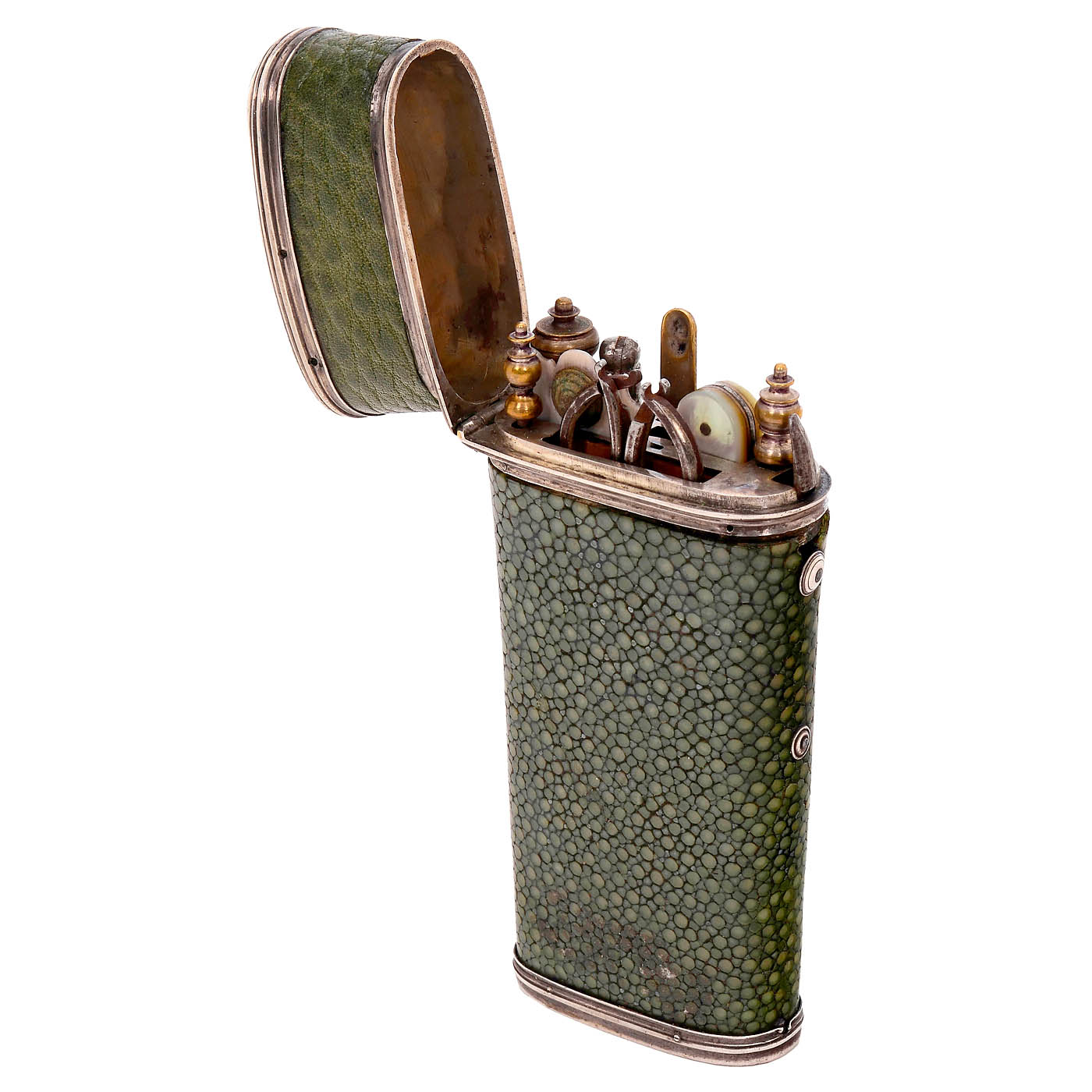 Georgian Silver Mounted Shagreen Etui, 18th Century