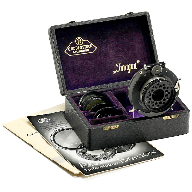 Rodenstock, 慕尼黑. 1:5,8, f = 20 cm. 带3个滤网光圈, 2块滤镜 (黄色), 完整.原装盒和说明书. 成色好!