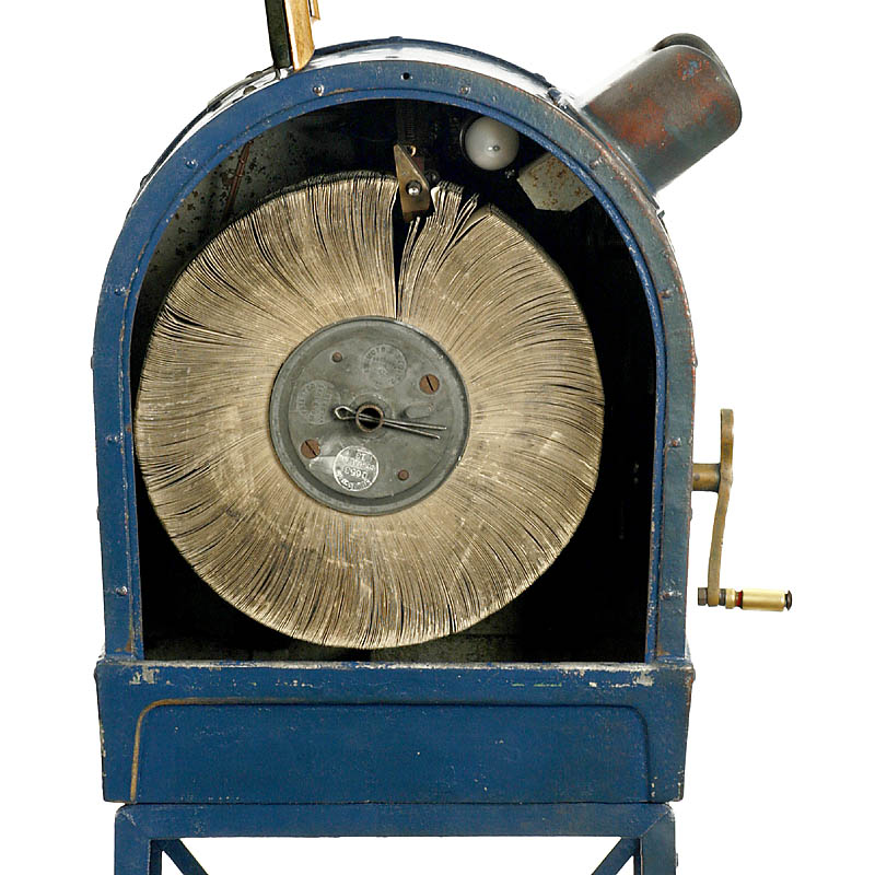 带 "U. S. Navy in Action" 图卷的原装旋转观影机 (Mutoscope),1900年9月拍成电影 1920