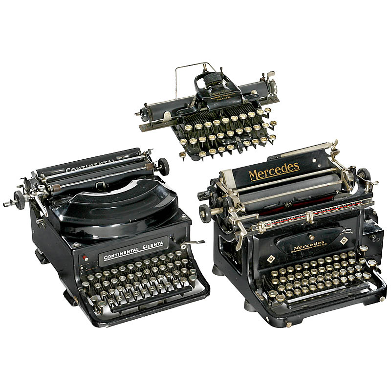 3) "Mercedes Elektra", c. 1935. Rare electric German outboard typewriter in great condition. – Literature: Martin, 1949, p. 363. – (3/?)