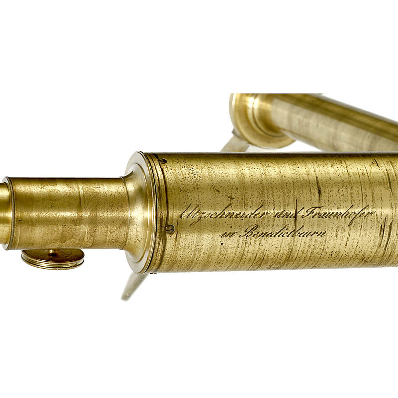 Signed on tube "Utzschneider und Fraunhofer in Benediktbeuern", originally lacquered brass (a bit worn), missing 1 eyepiece glass, rack-and-pinion drive,