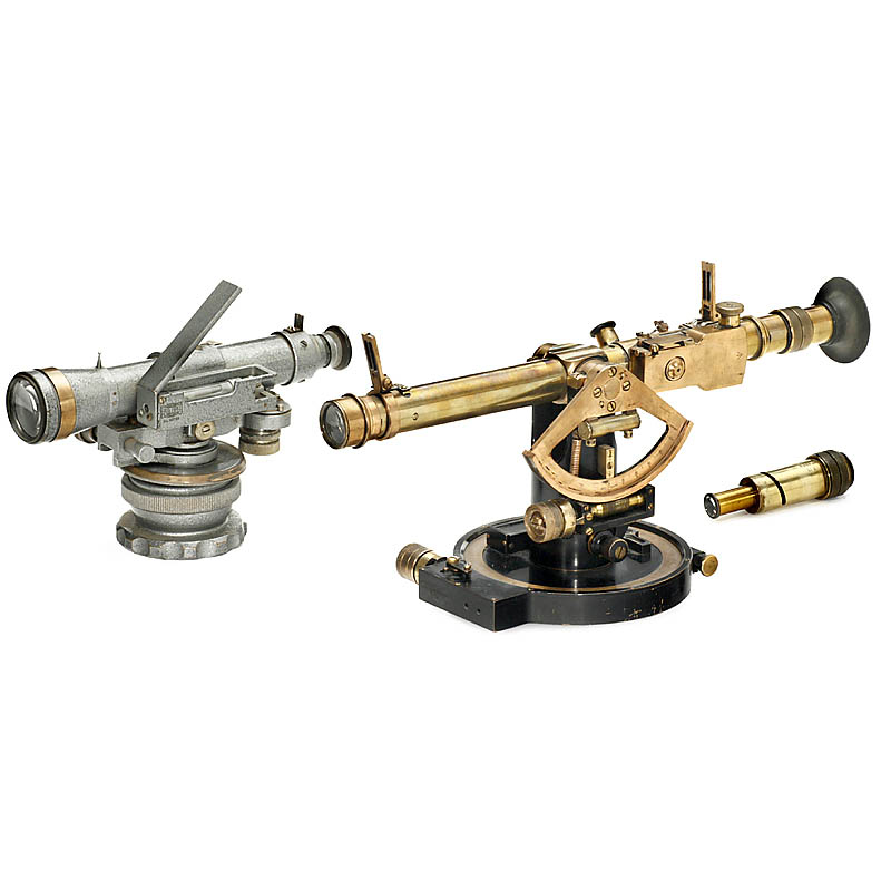 1) Surveying Equipment of the British Army, 1916. "W. Cruchon, London, made by Kern & Co., Ltd., Switzerland, Director No. 5 Mark I, 1916". "Broad Arrow" engravings. Brass instrument, telescope length 13 1/3 in.