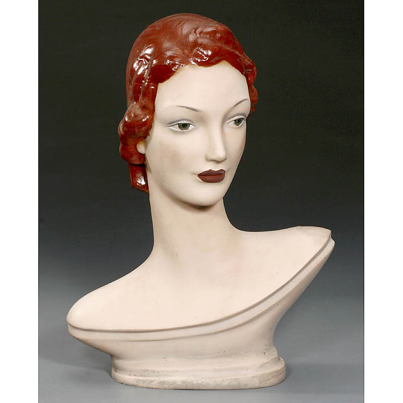 Unmarked, compound material, 1 shoulder damaged, height: 18 7/8 in.