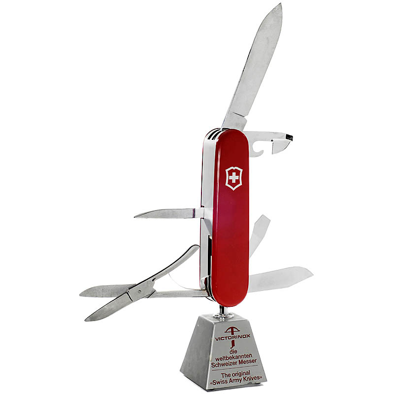 Large size model of the famous Swiss Officer Knife "Victorinox", electric motor drive (230 V), height 35 in., works well! – Impressive exhibition piece!