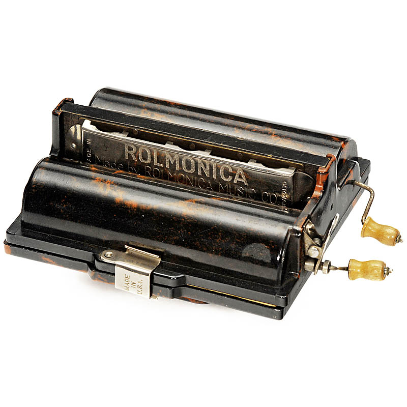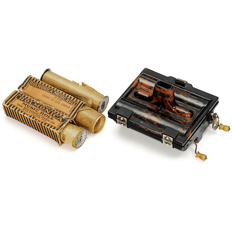 Bakelite case with 2 cranks, with 4 small paper rolls, good working condition!