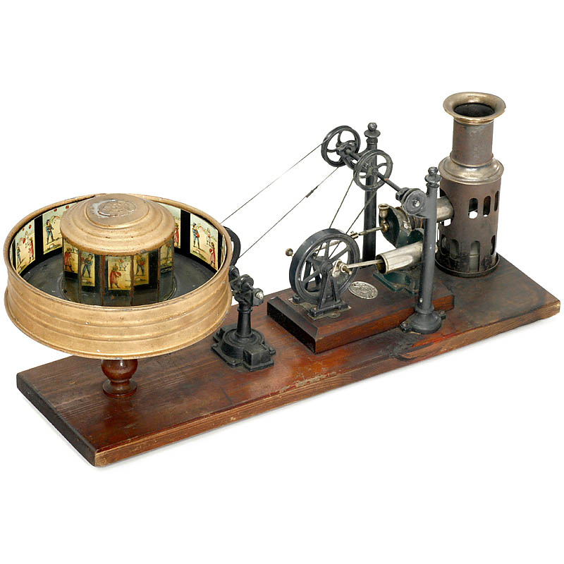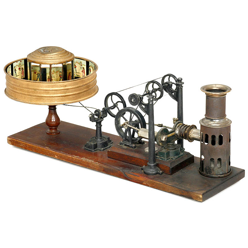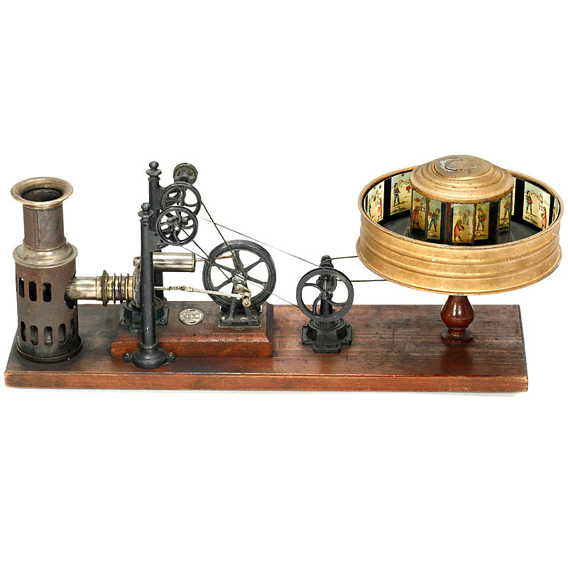 极为罕见的原“Praxinoscope” 采用热空气引擎发电. 由德国纽伦堡著名的锡玩具制造商Ernst Plank制造. 非常吸引人的仪器,用来展示自图片开始流行年代起的生活照– 12条图片带 – 极完美的成色,收藏展览价值高!