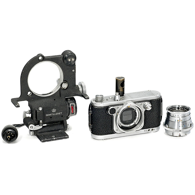 Berning, Düsseldorf. Robot Recorder 24,类似于带辅助系统的 Typ 24-e,无回片钮. 新的时间序列 4,8,15,30,60,125,250,500,B,镜头锁定缺失. Tele-Xenar 4/75 mm. 带 KULI 支座,刻有丹麦皇冠标记,和 SOARTILLERIET