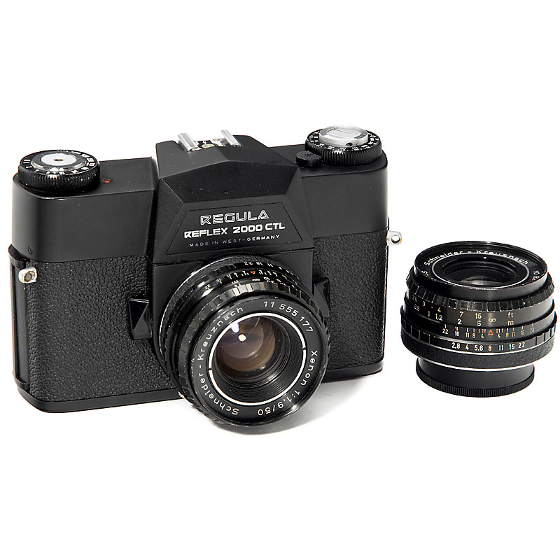Regula 工业王国, Bad Liebenzell. 西德制造,黑色,内置 Cds 测光表(未检测),帘幕式快门 1-1/2000 秒,施耐德 Xenon 1.9/50 mm, 施耐德 Curtagon 2.8/35 mm, 有保修卡及手册