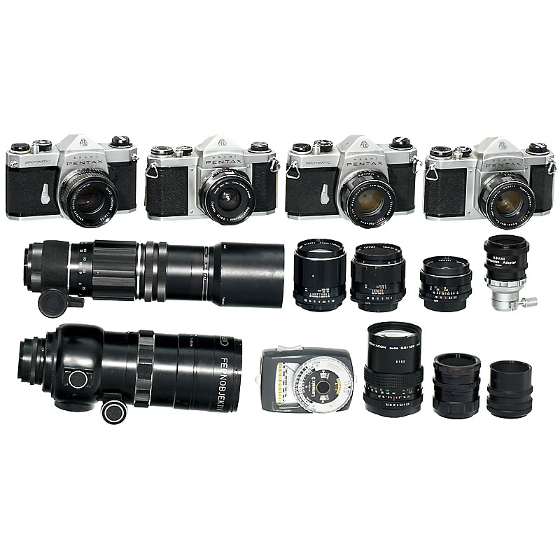 10) 透镜头 Novoflex 5.6/40 cm, Pentacon 2.8/135 mm 以及 Lunasix 3