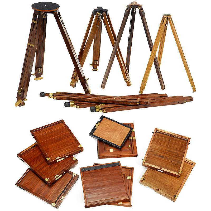 拍品描述: 多数是双片匣,最大达 24x30 cm, 各式各样的后背及还原框