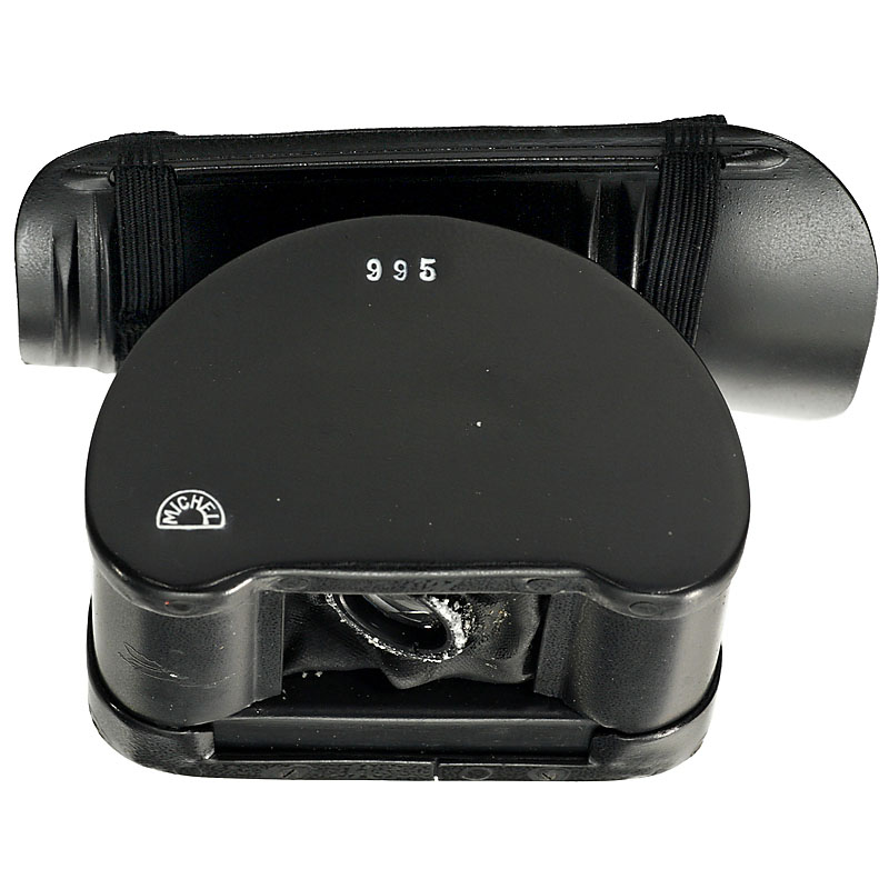 Interestingly, this specific camera B995 has embossed on the top plate the Swiss cross with "PAT.", referring to the Swiss patent. As it does not say "PAT.ANG." (Patent angemeldet/patent applied for) like the one sold at Christie's on 6. June 2007, it must have been made after the Swiss patent was granted (15. Sept. 1937). In addition camera B995 shows the inscription "D.R.P." (Deutsches Reichspatent), thus indicating that it must have been made after the German patent had been granted. In addition it has the Michel company's logo embossed on the top and base plate; the camera sold at Christie's on 6. June 2007 did not show this logo. Most possibly camera B995 is the actual camera that Adrian Michel presented to A. Schild S.A. with the idea of formal manufacture (which was never carried out)