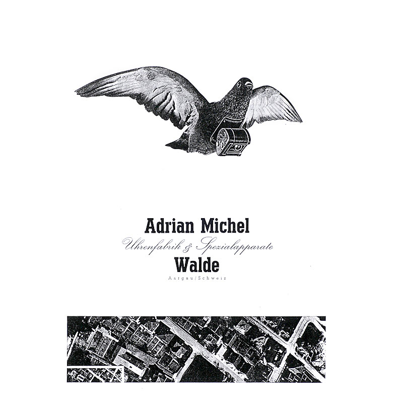 Christian Adrian Michel (1912.1.6-1980.3.27)在30年代在瑞士 Walde设计并手工制造了这款信鸽相机。他的公司Adrian Michel原是一家制表公司。这款信鸽相机他一共就制作了很少量的几款样机,为了能吸引到其他的客户。据他当时的工人回忆,这款相机最多制作了不超过10台。同款相机在2007年6由佳士得拍卖过一次。