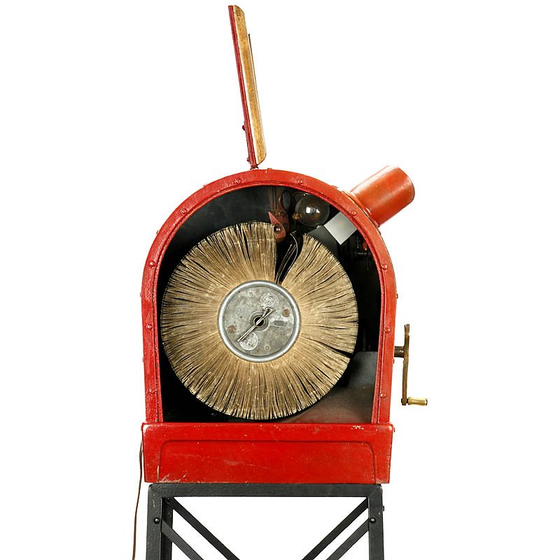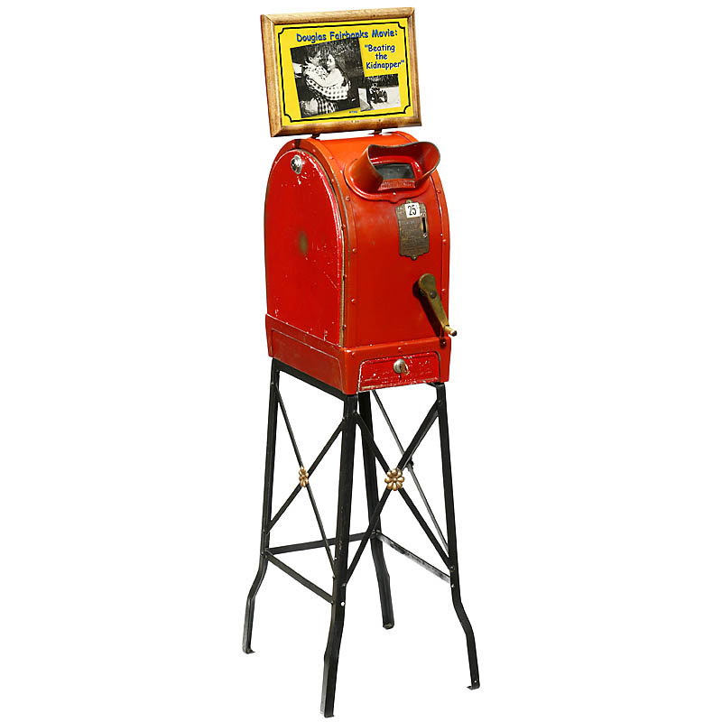 国际Mutoscope Reel 有限公司,纽约, 带影片Nr. 7392: Douglas Fairbank: "殴打绑架者", 投币式,110 V. 高: 120 cm. – 文献: R.Bueschel,"Arcade Vol. 1", 1993年, S. 243. –非常有吸引力的收藏品和有价值的展览物件.
