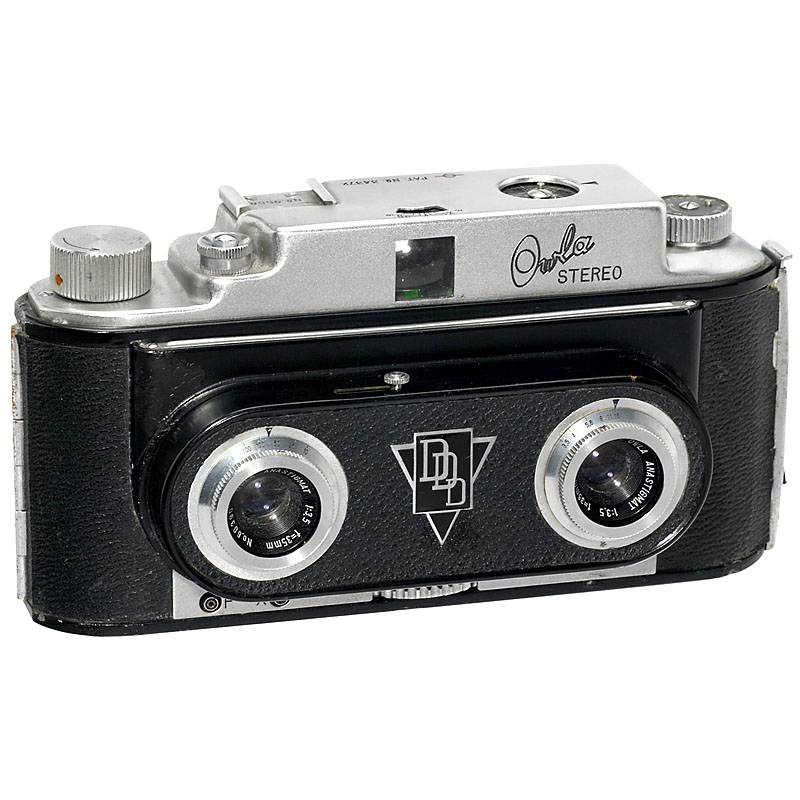 Sankei Koki/Toko, 日本, 制造商可能是 Togo-do. 35mm 小画面立体相机, 图片尺寸 23 x 24 mm, 2支 Owla Anastigmat 3,5/35 mm, 调焦装置, 快门速度 1/10-1/200 秒. – 参考文献: Alexander Schulz, Photographica Cabinett 44/2008