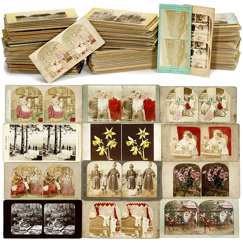 约 340张立体卡片, 私人图片,没有制造商. 主题 (场景): 法国, 瑞士, 德国, 美国, 80% 拍自英国. 值得一看!