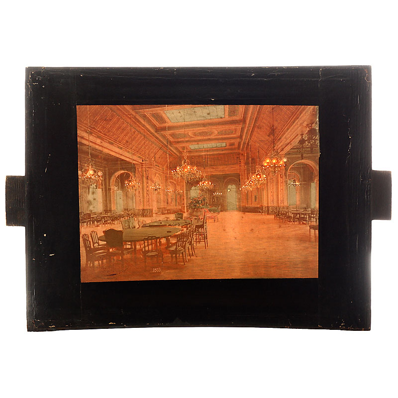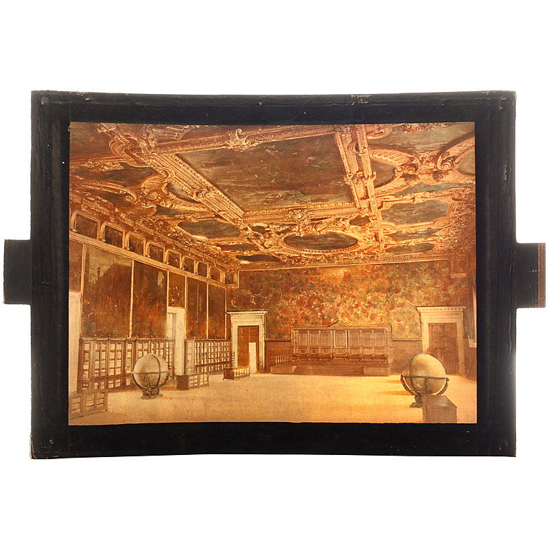 Carlo Ponti, 威尼斯. 木质机身带黄铜配件, 尺寸: 35 1/2 x 19 x 24 4/5 in., 不仅可用于弯曲的摄影板 (40 x 30cm), 同时也可用于平整的昼夜图片板, 特殊版本带可转变的附加放大器, 功能正常, 保养的很好! 带3张原装照片 (15 3/4 x 11 3/4 in.), 弯曲的摄影底板 , 其中有2 张带有夜间灯光照明效果: 1) London, Big Ben. – 2) No. 44, Palais Ducal, Paradise by Tintoretto. – 附加: 3) 无主题, 宫殿礼堂. – 部分图片有轻微破损. – 引人注意!