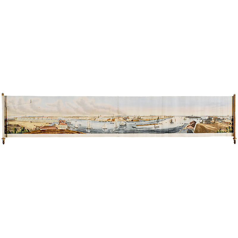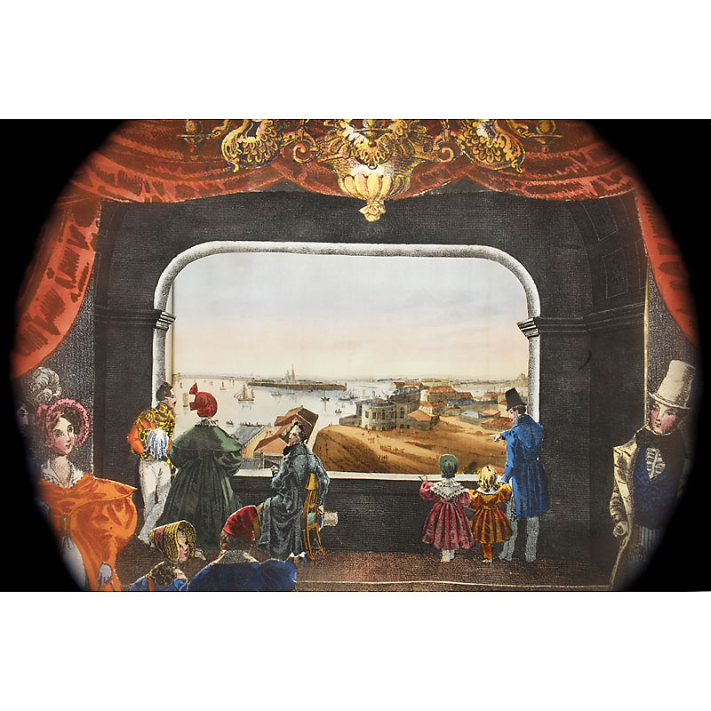 带活动背景, 2个后景, 手工着色的铜版画, 原装盒子, 26 x 20 cm. -- 十分罕见和早期的收藏!