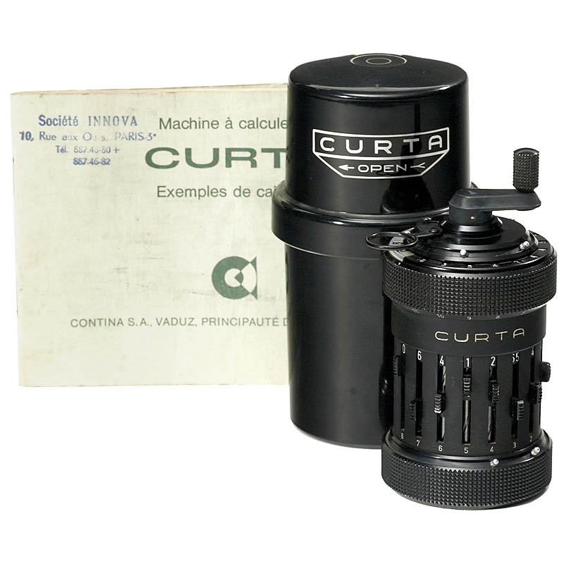 With original tin box and instruction manual (French). Serial no. 72006. – As the smallest miniature stepped drum machine a true milestone in calculator history!