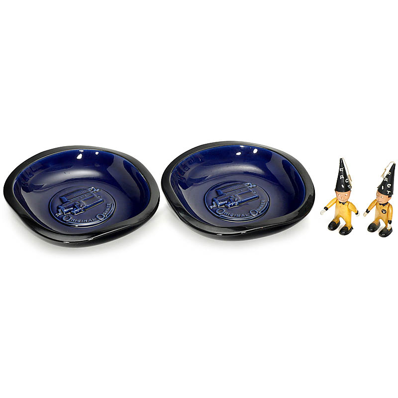 1) 2 ashtrays "Original Odhner", ceramic, O 6 3/4 in.2) 2figures "Facit".