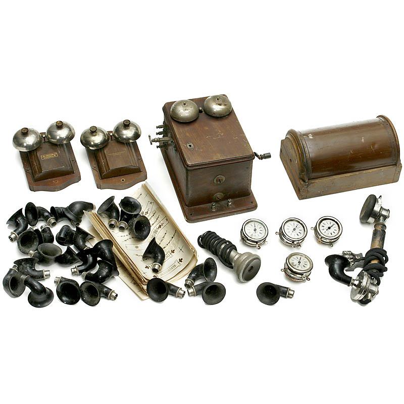 3) Unmarked wall telephone with complemented handset (Elektrisk Bureau), with additional receiver