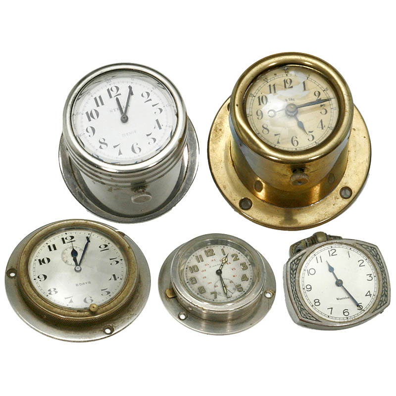 5个不同的汽车钟表, 约1925年