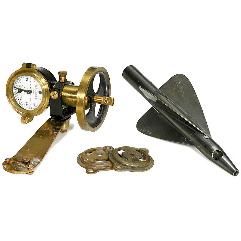 English navigation tool, used to estimate the speed of boats, with manual, in wooden box.