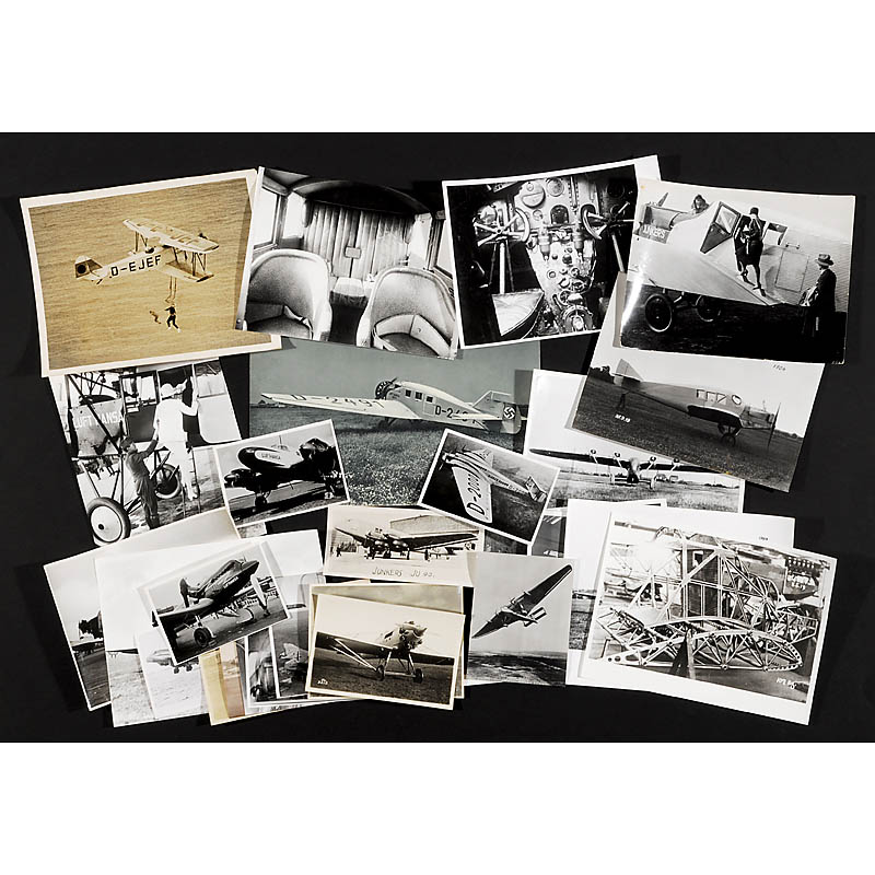 29 photographs, partly with rear label "Lufthansa – for editorial purpose only", with lots of airplane types including Junkers, Fokker and others. – Rare material!