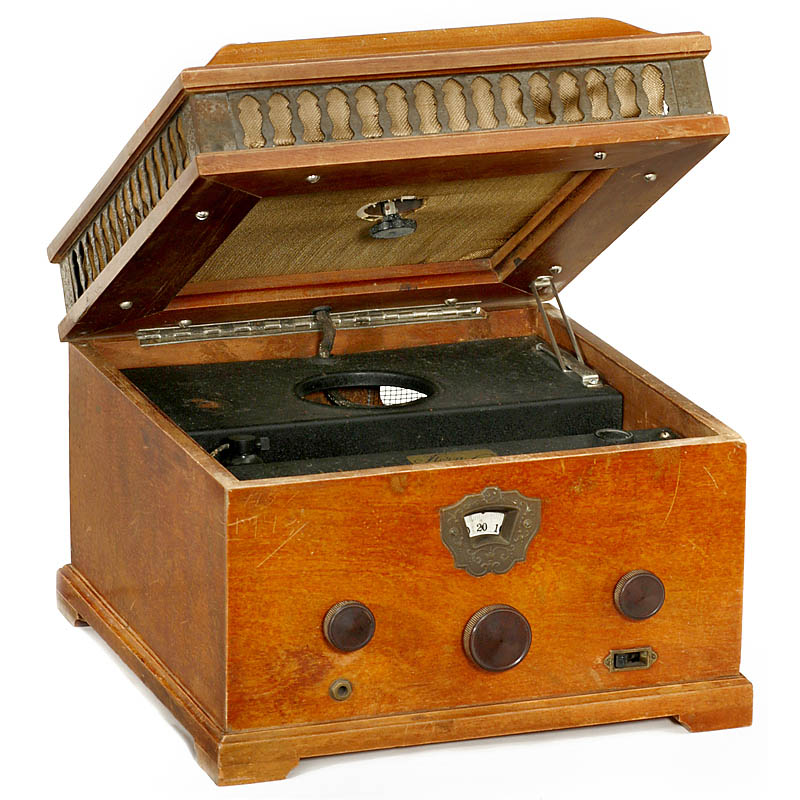 1) Radio receiver "Stern & Stern", Sweden, 4 valves, inbuilt loudspeaker.