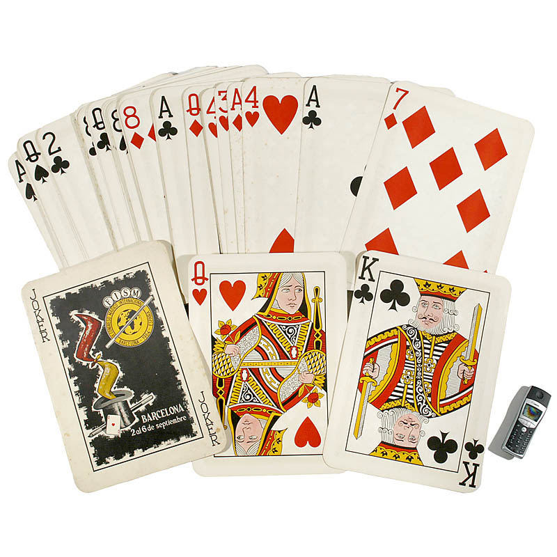 For card manipulations, made for the international Magician Congress in Barcelona 1964 (FISM), size: 12 ½ x 17 ½ in.! Please compare the size to mobile phone.