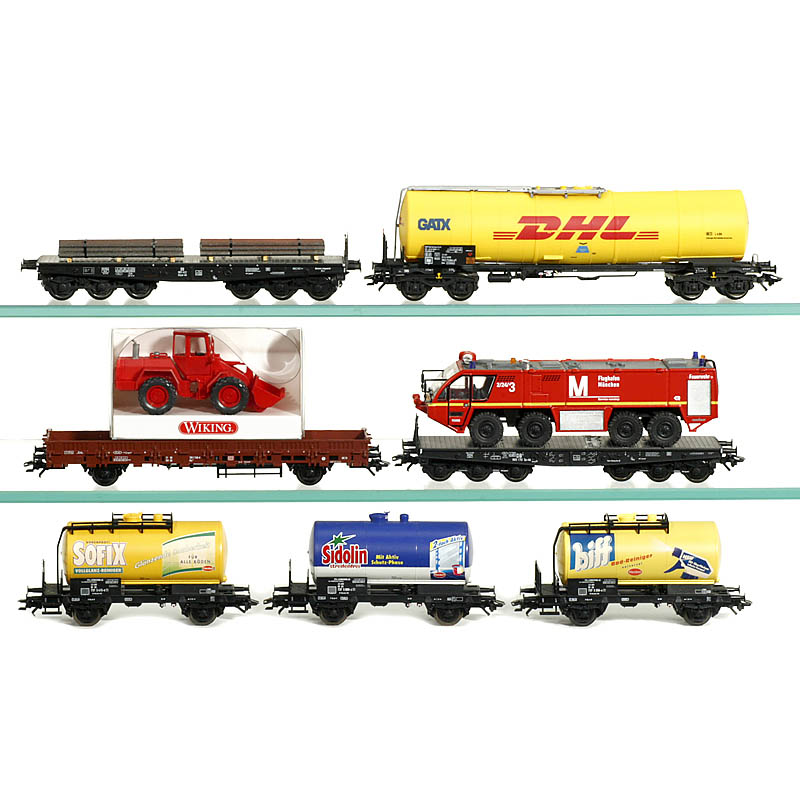 1) Heavy-duty flat car with airport fire truck, no. 48667.