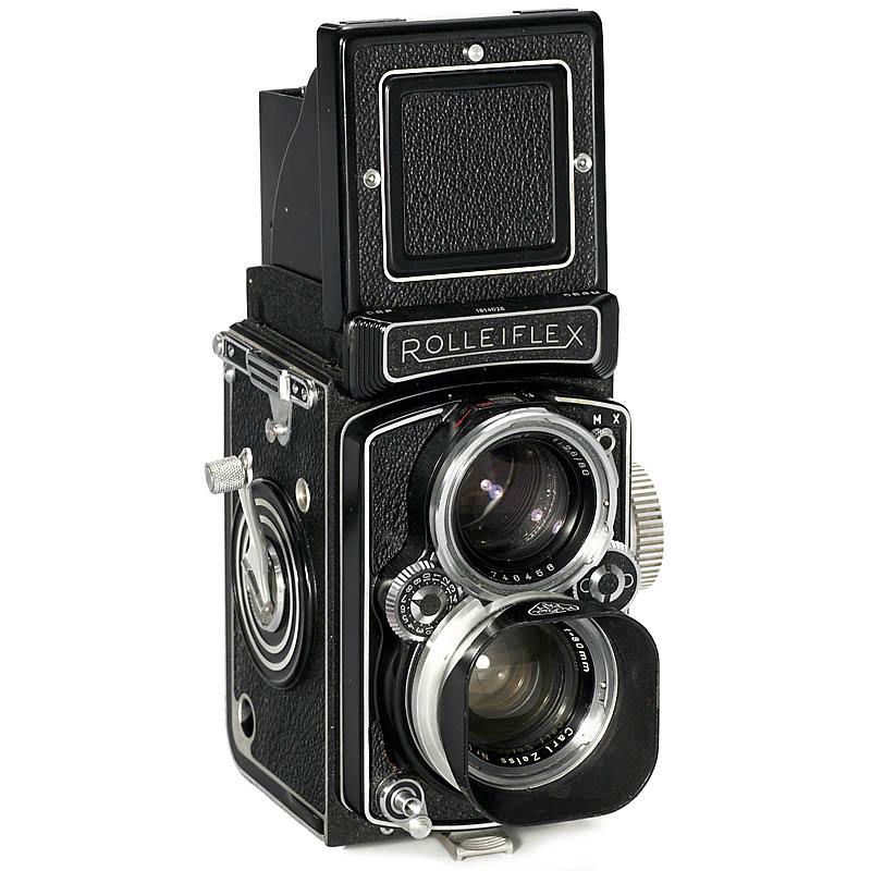 Franke & Heidecke, Braunschweig. No. 1614026, with Planar 2,8/80 mm, no. 1858169, Synchro-Compur. With lens cap and maker's case. – Produced only one year. Nice condition!