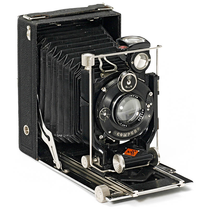 Agfa, München. No. JB446, for 9x12cm plates, Solinear 4.5/13.5 cm in Dial Compur, with ground glass back. Highly sought-after with Dial Compur shutter. Mint condition!