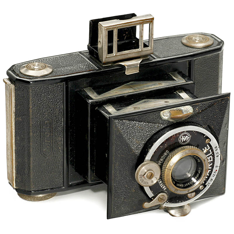 Molta Company (Minolta Cameras), Japan. For rollfilm type 127, size 3 x 4 cm and 4 x 6,5 cm, Coronar-Anastigmat Nippon 5,6/75 mm, shutter 1/25–1/100 sec.