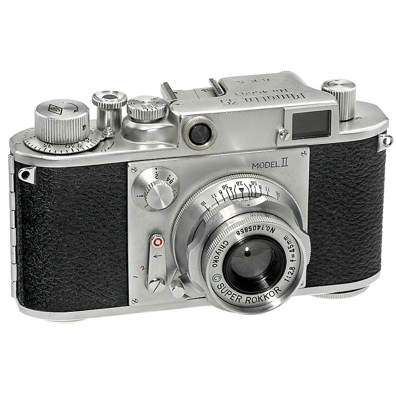 Chiyoda Kogaku, Japan. "Made in Japan", "C.K.S.", Chiyoko Super Rokkor 2,8/45 mm, Leica M39 screw mount, focal plane shutter (stuck).