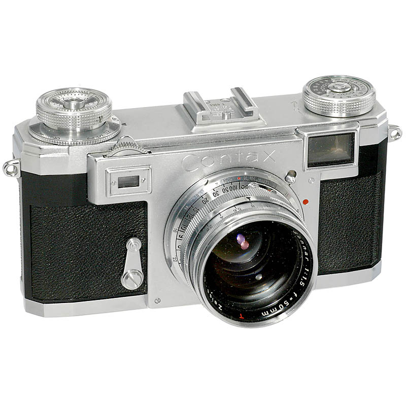 Zeiss Ikon, Stuttgart. No. T 6363, 1st version, Sonnar 1,5/50 mm T, no. 90403. – Long shutter speeds slow, everything else in excellent ++ condition (like new). Lens with feet engraving.